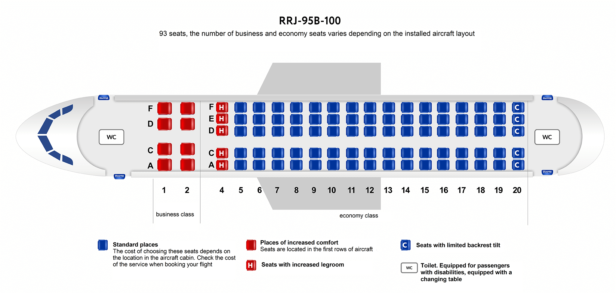 RRJ-95B-100 - 1st, 2nd row, provided the economy class layout on the flight.